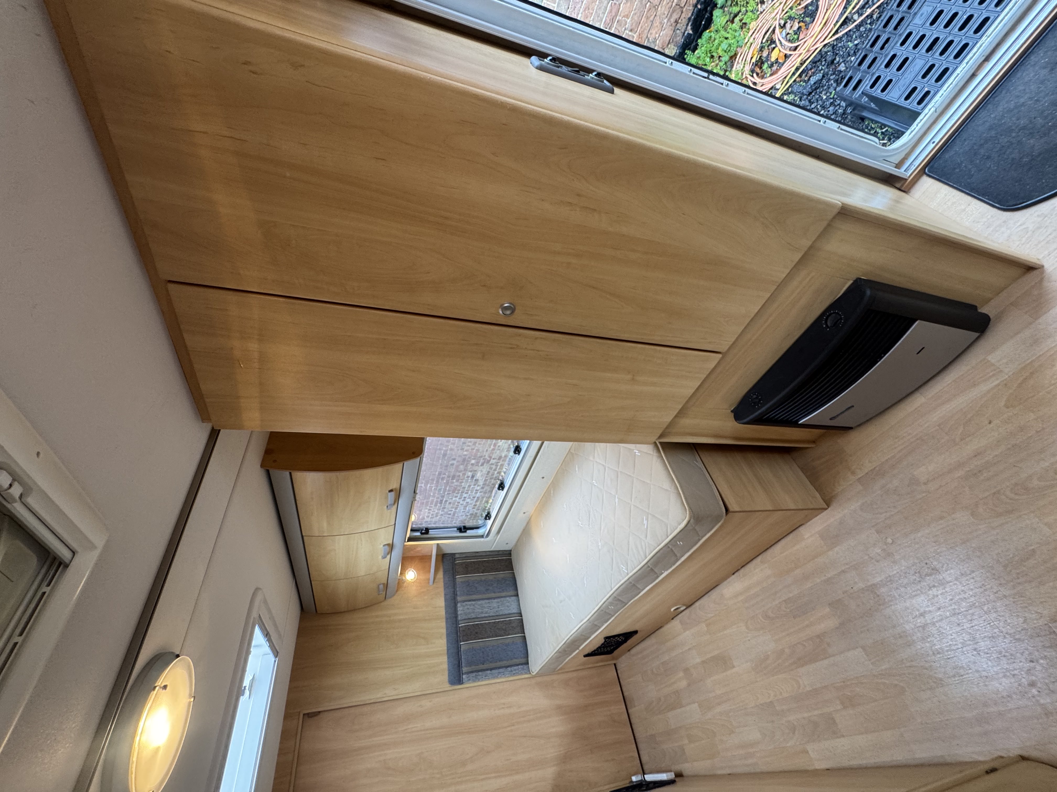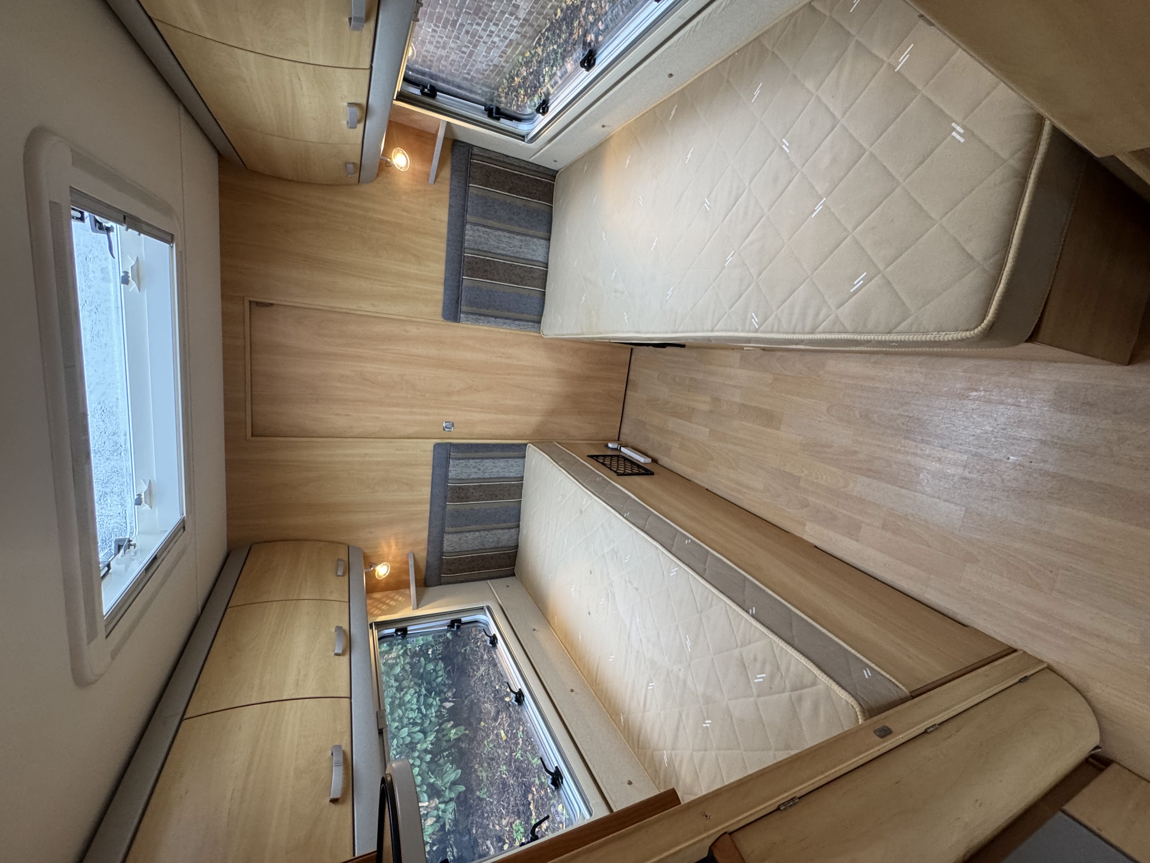 BEDROOM: Twin fixed single beds to the rear - TV mounting point - Double wardrobe plus overhead lockers - Reading lights - Generous under-bed storage